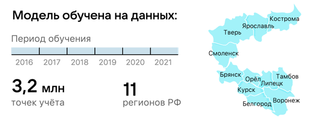 - ML-модель выявляет нетривиальные связи между показателями, вычисляет вероятность и прогнозирует объем неучтенного энергопотребления для каждой точки учета.